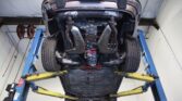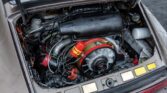 Power is supplied by an air-cooled flat-six engine that uses a fuel injection system, all paired with a 915 5-speed manual transaxle. Stopping power is provided by four-wheel disc brakes. The car retains its unmistakable stance thanks to 16-inch Fuchs-style wheels. The exterior is fitted with Bosch headlights, Bosch fog lights, a fender-mounted antenna, rear rubber bumperettes, and a single exhaust outlet. A spare tire and a tool roll are located in the front trunk.